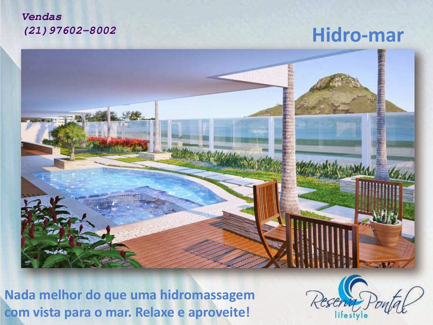 Seu lugar ao sol. Seu lugar ao mar. Seu lifestyle. RESERVA PONTAL é um condomínio de alto padrão despojado, único, debruçado sobre o mar. Puro conforto visual, natural, mental e residencial. O Pontal vai transbordar lifestyle. O lifestyle dos seus desejos